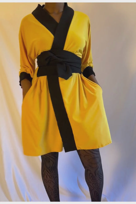 - As a wrap dress by tying it closed with the provided belt